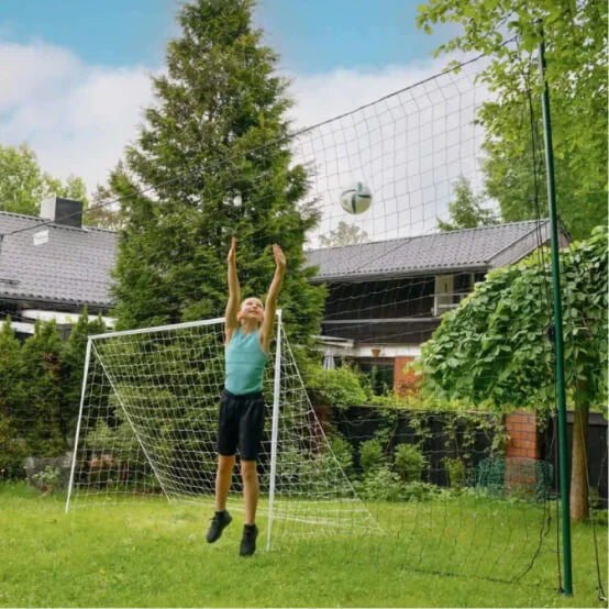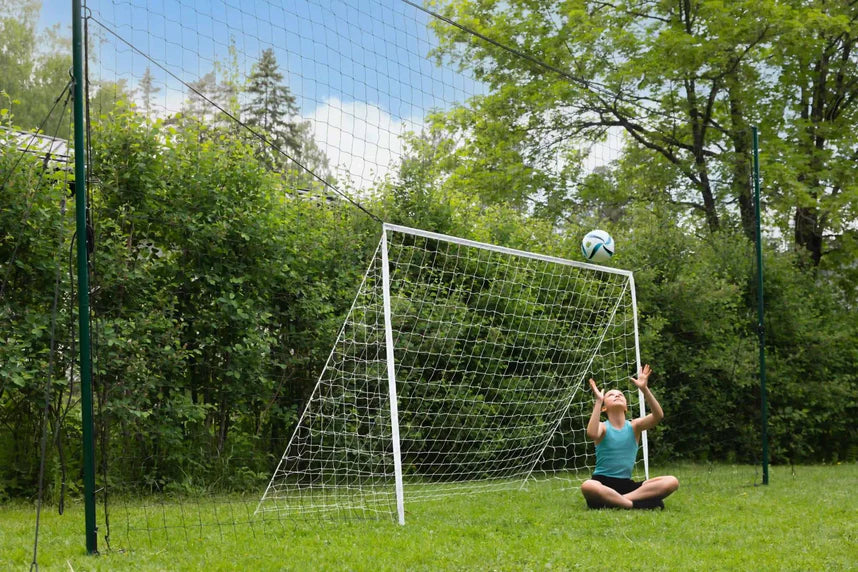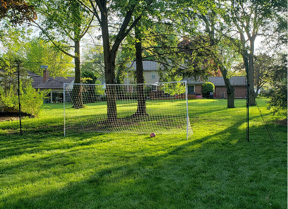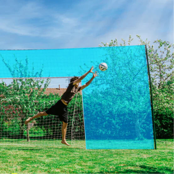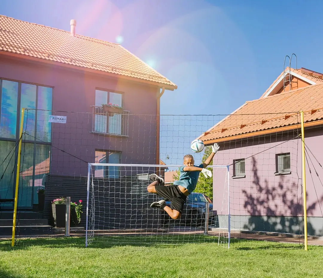 A wide containment net that stops wild kicks from flying off into the street, garden, or neighbor’s yard.