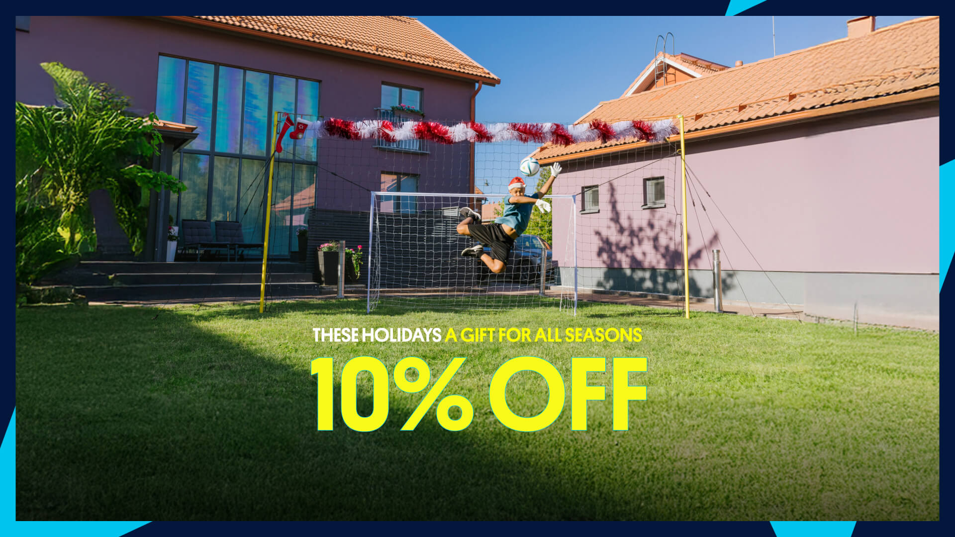 Open Goaaal® es una NUEVA portería patentada + red de detención + reboteador TODO EN UNO. Cualquiera puede entrenar como los profesionales en su propio jardín sin preocuparse por lanzar el balón por encima de la valla, romper ventanas, dañar los postes de la cerca o destruir el jardín. Con 3 metros de alto y hasta 8,8 metros de ancho, Open Goaaal devuelve los tiros fallidos, ¡así que el entrenamiento nunca se detiene!