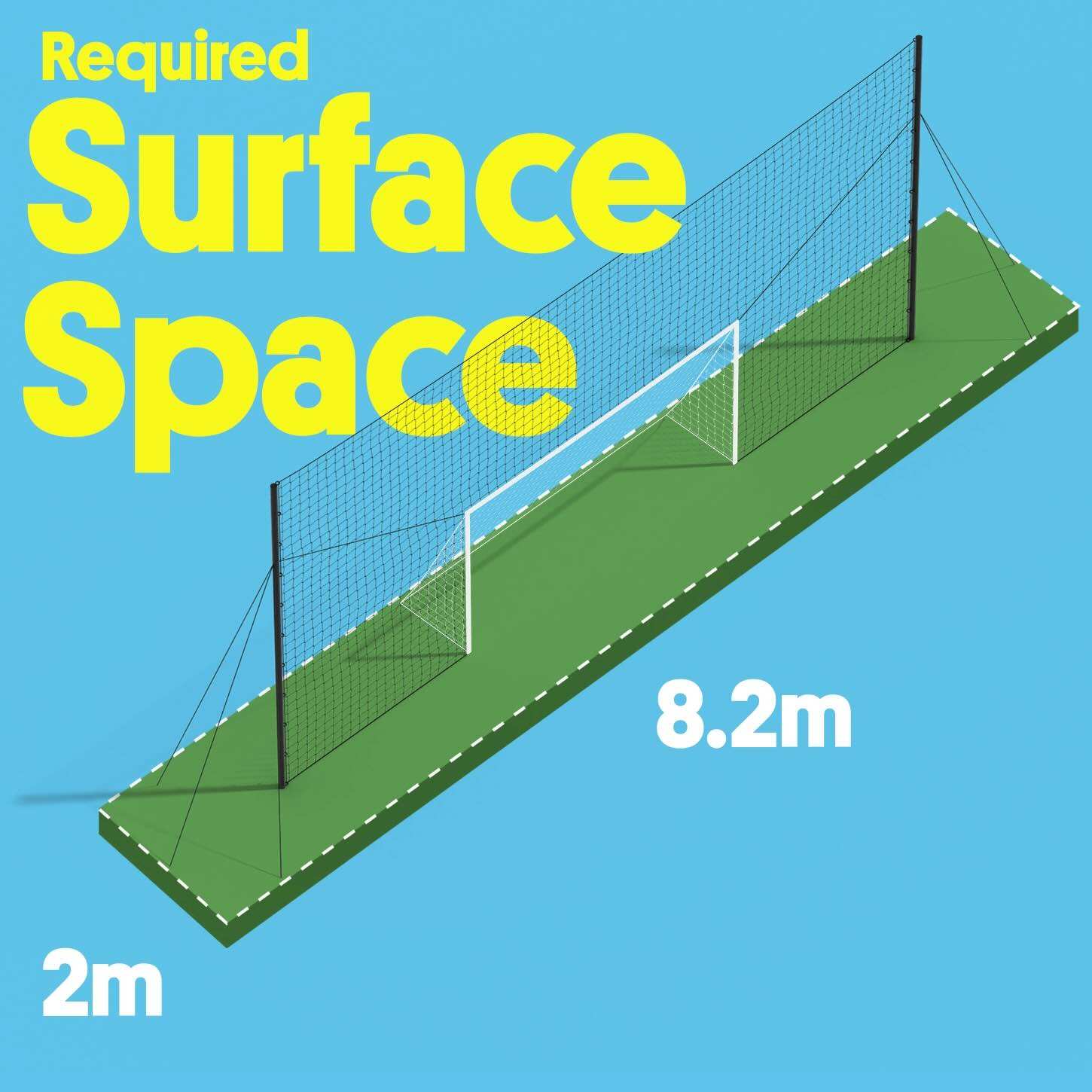 • Backstop/Rebounder: 6.6m wide x 3m high (10ft tall - Up to 21ft wide)